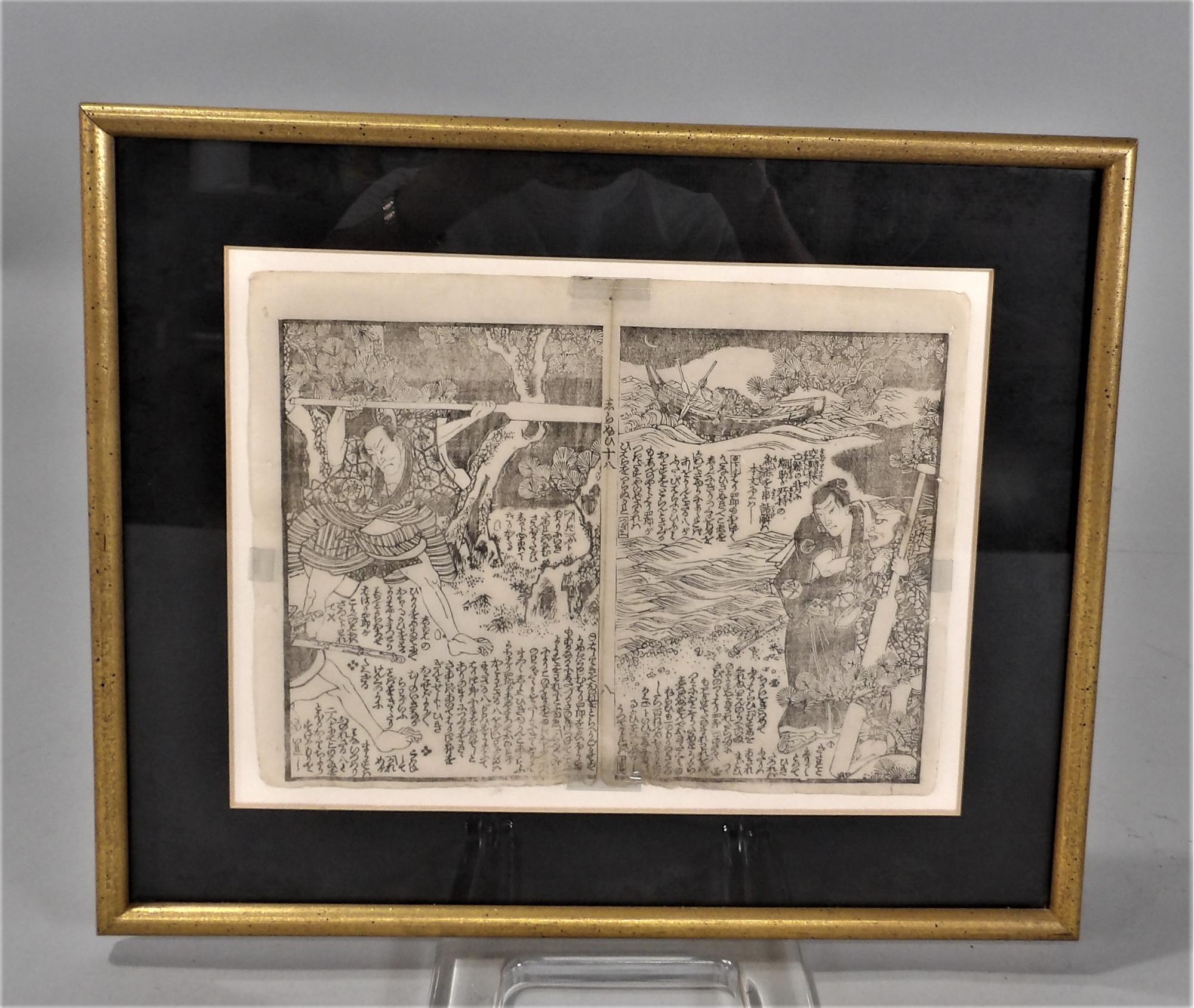 Listed are 2 pages from a Japanese book - 13.25" x 11" with frame and 9" x 7" without.