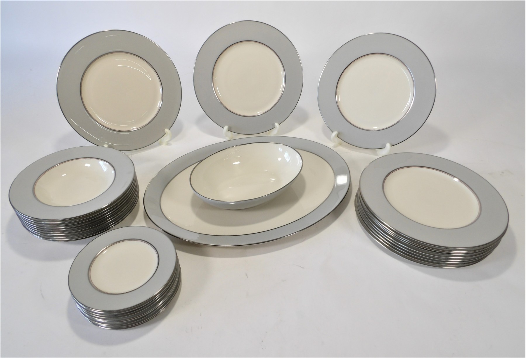 This listing consists of 34 very elegant pieces of Dubarry Gray by Lenox: