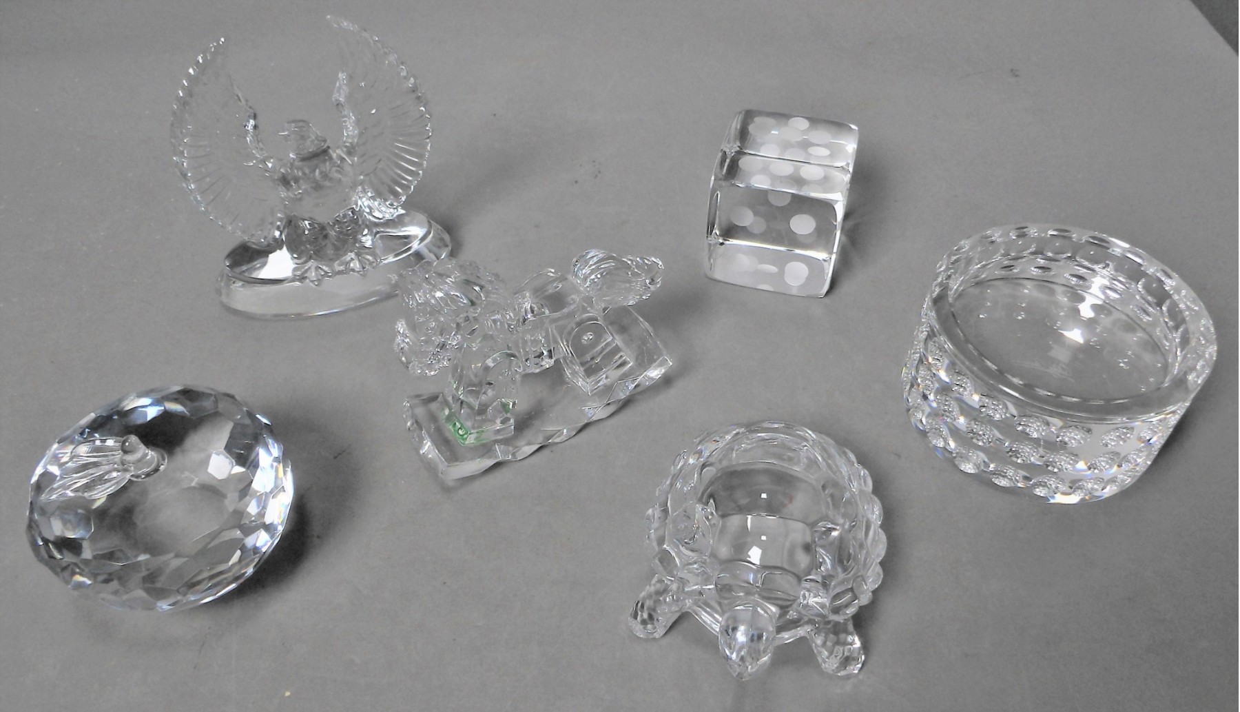 - heavy (1lb x 12oz) crystal coaster, 4"diameter x 2"h by Oleg Cassini, a couple of very fine scratches