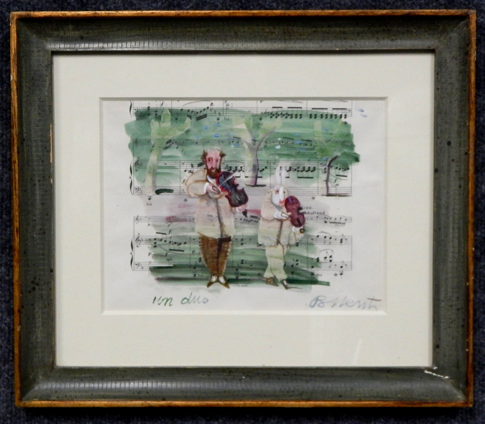 Original watercolor over sheet music, titled " Un Duo"