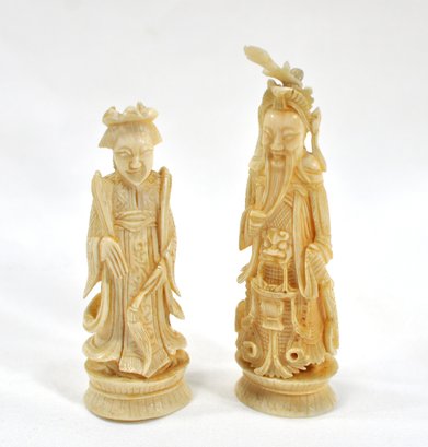 Pair of hand carved bone Asian man and woman figures.