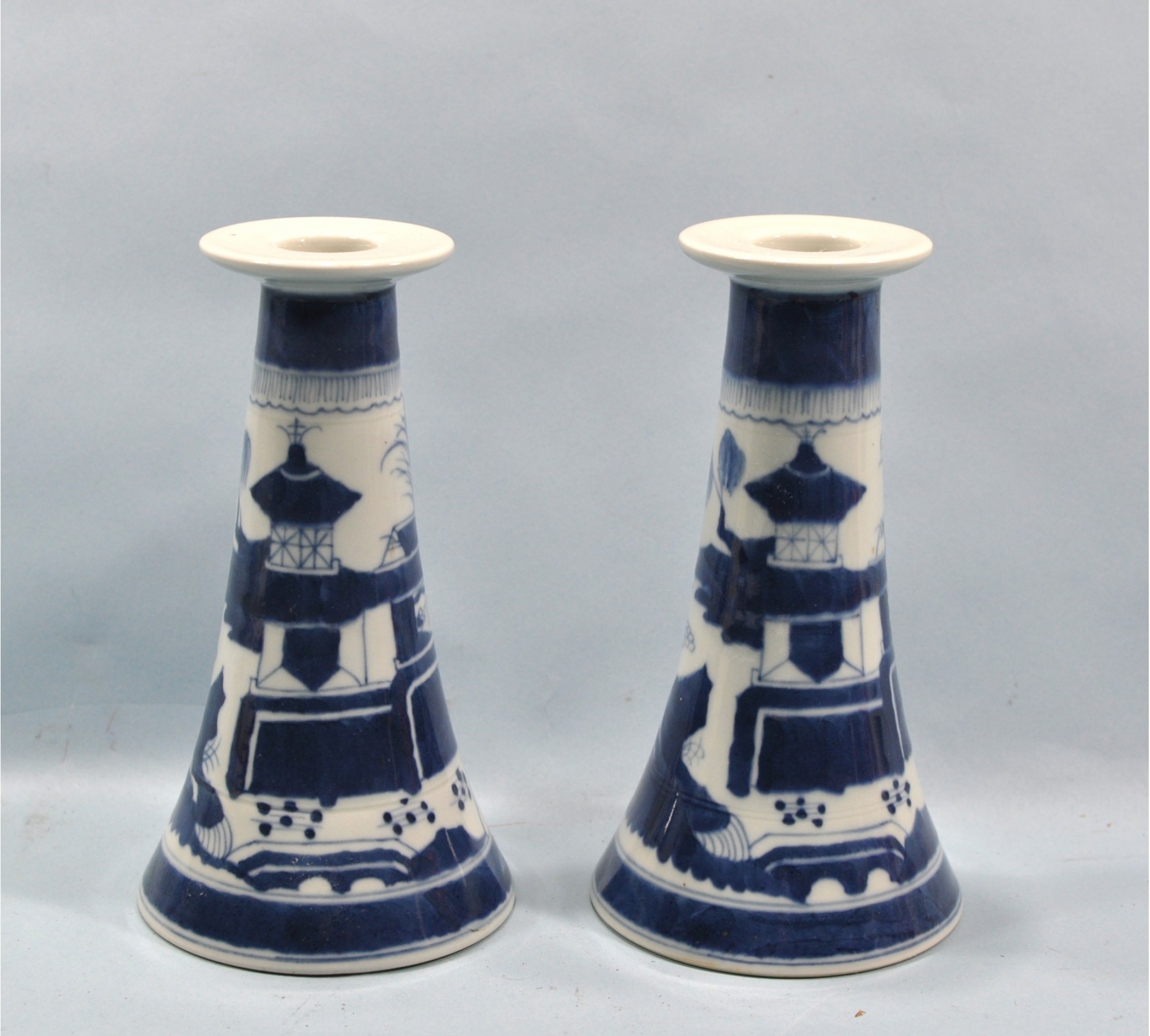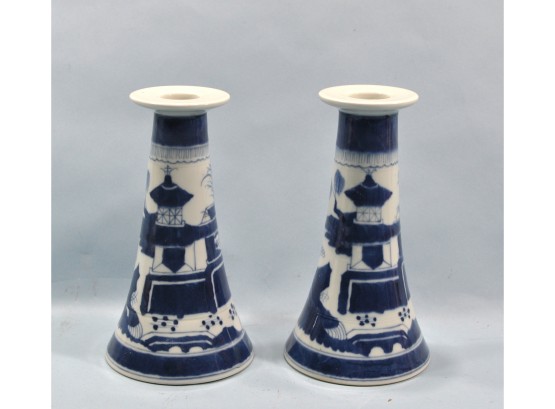 Pair of antique or vintage Chinese candleholders or could be used as vases if desired.