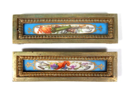 Beautiful hand painted miniature porcelain plaques in brass frames.