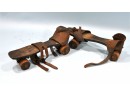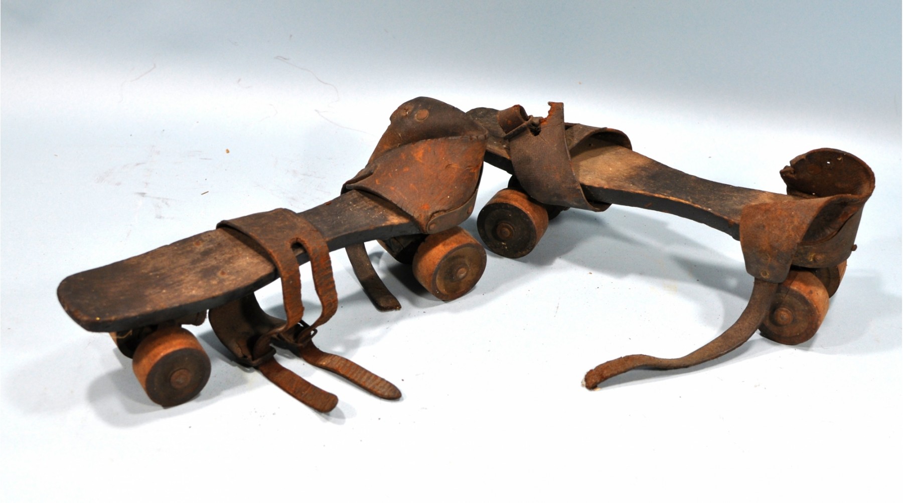 Antique roller skates for display.