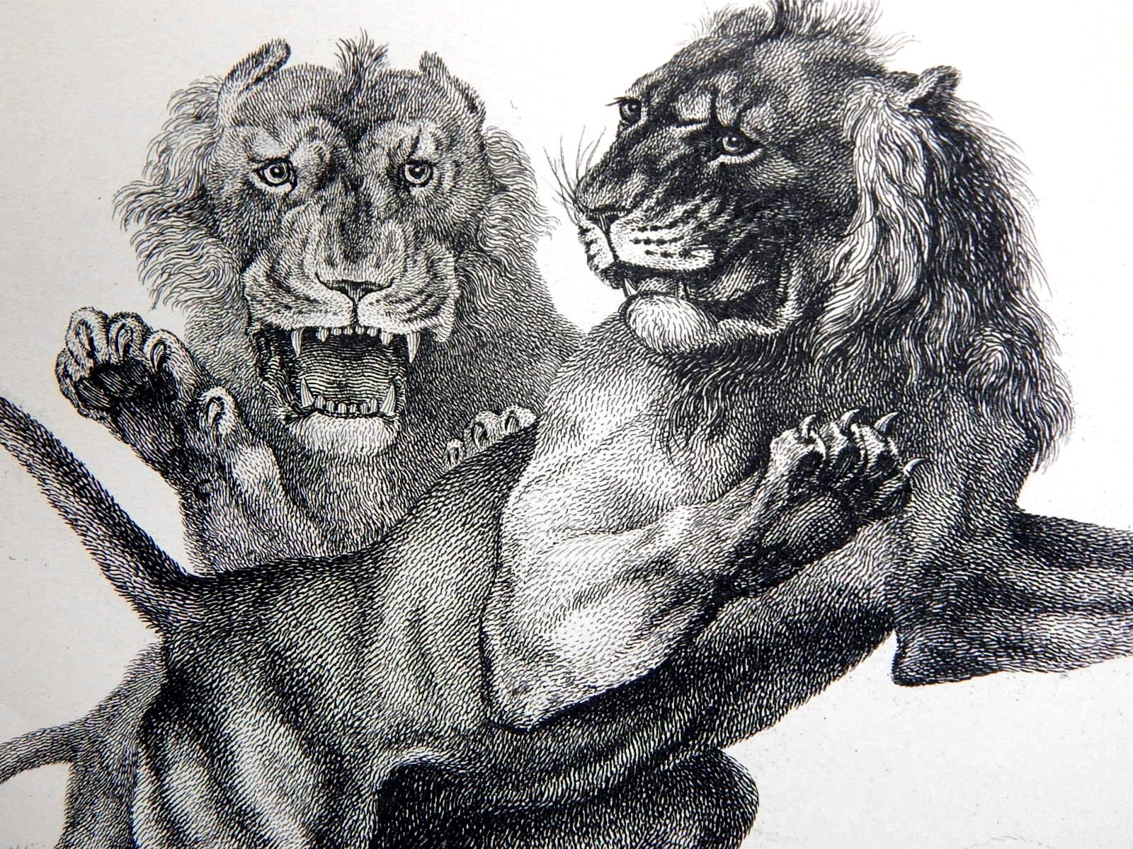 Pair of awesome loin engravings by Thomas Landseer (British).