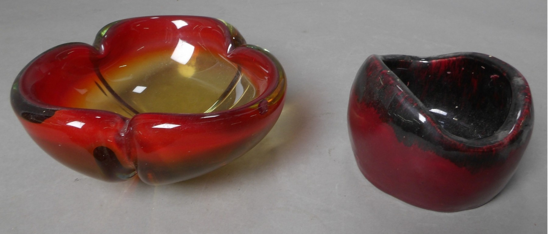 Smaller bowl appears to be hand made. Initials KB on the bottom.