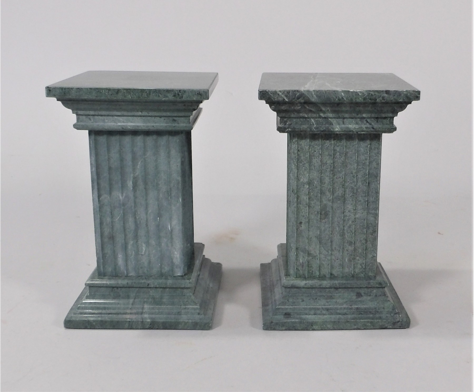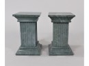 Listed is a pair of marble columns measuring 6.5"h x 4"w x 4.6lbs. They can be used as bookends or pedestals. Condition is very good. See photos for details.