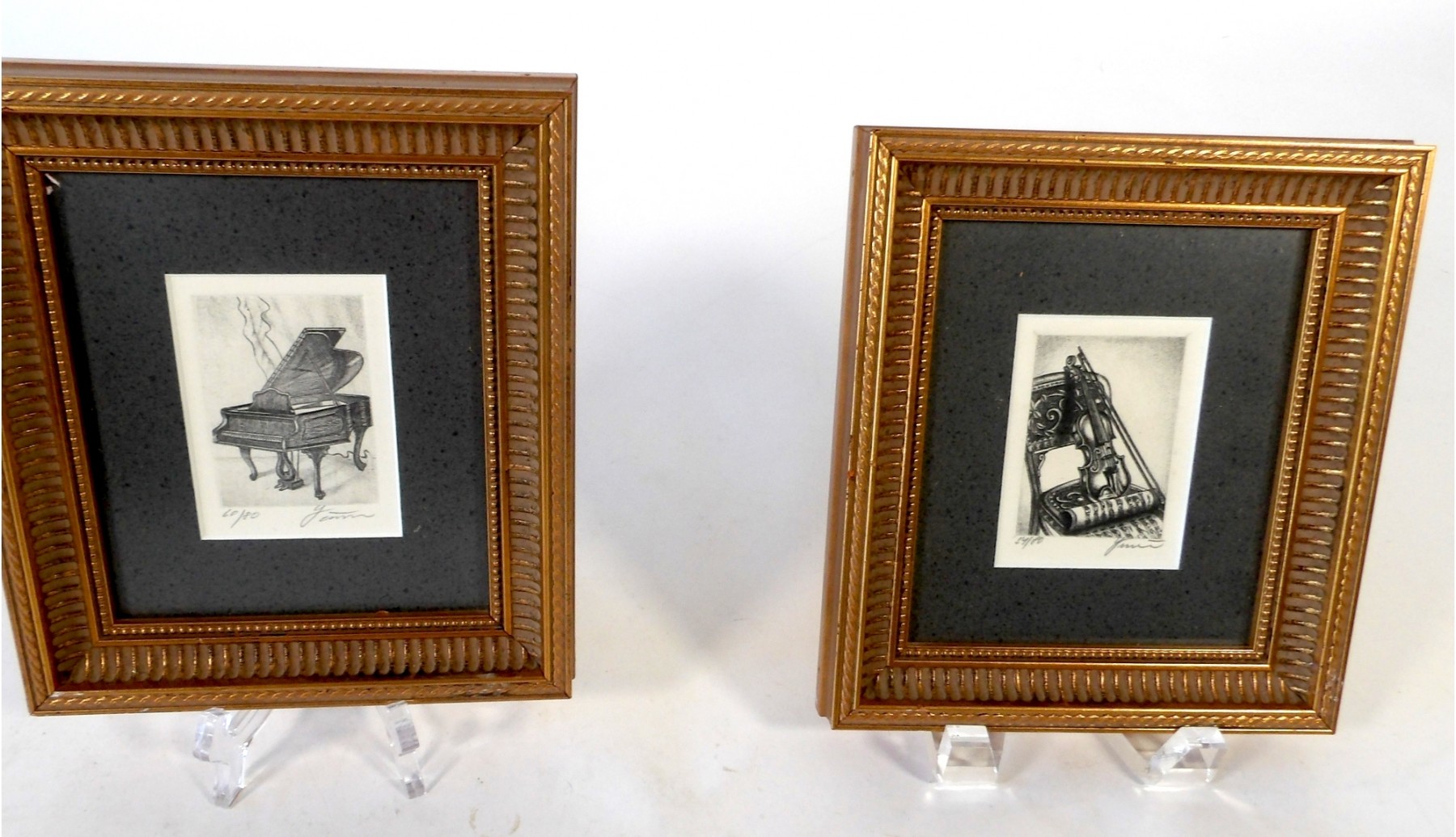 Pencil drawings of a piano, and a violin.