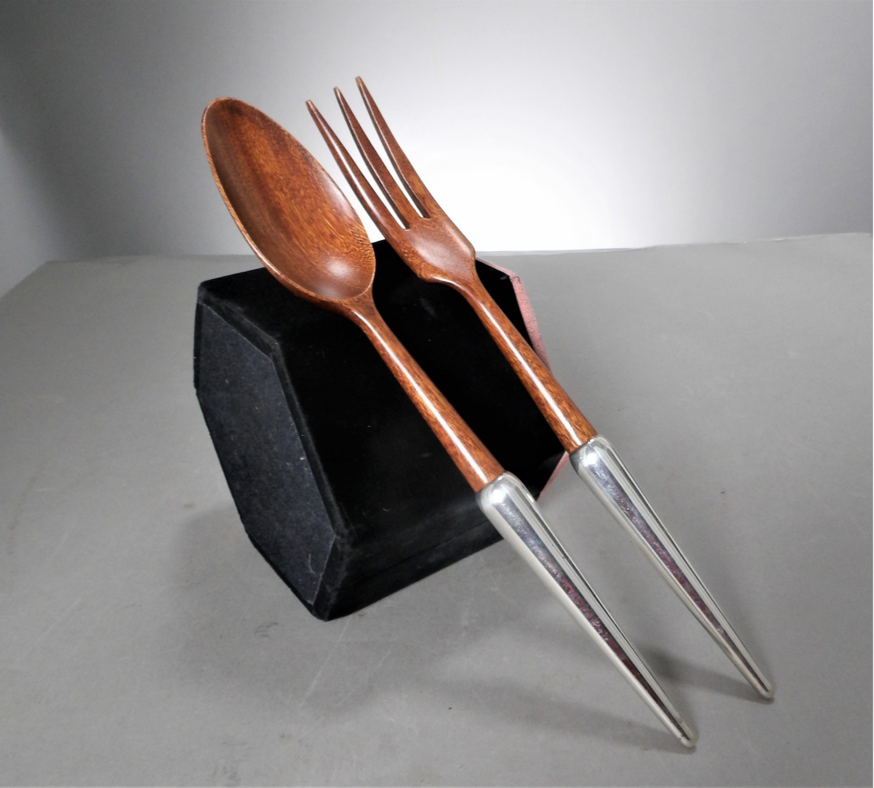 Listed is a pair of salad serving utensils - just shy of 12" long. There is some discoloration on the sterling handles, otherwise in very good condition. See photos for details.