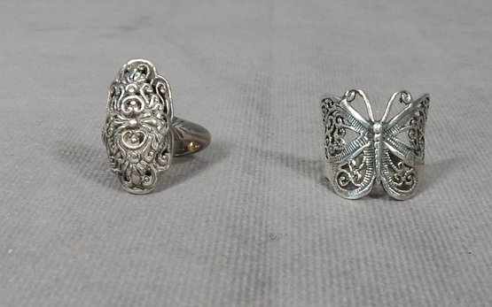 Butterfly is size 7 1/2. Pretty filigree pattern that wraps around your finger nicely. It is marked 925, DGS.