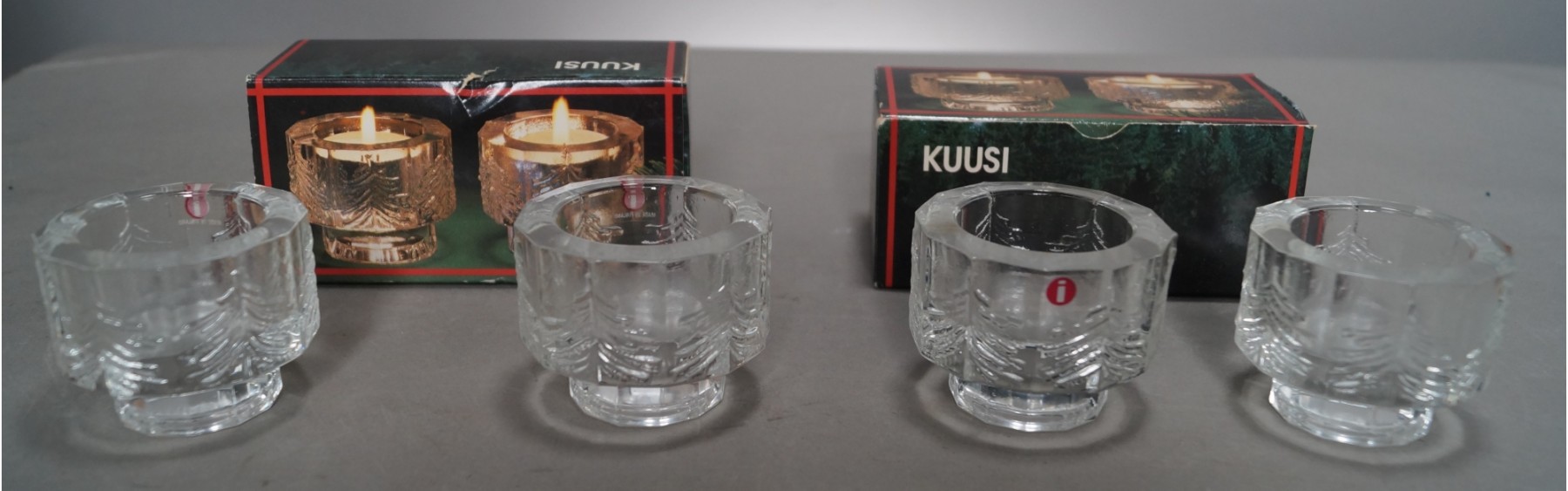 These candle holders are designed for metal-cased warming candles only. 1 pair in each box. Pine tree design. Made in Finland.