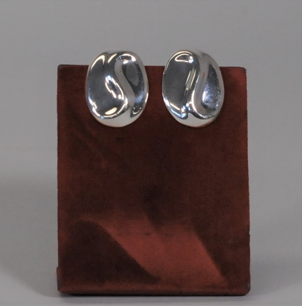 Listed are a pair of clip on earrings measuring 1.5"l x 1"w. Stamped 925. In great condition.