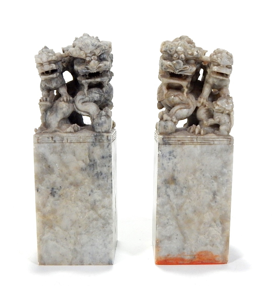 Nice carved of stone Foo lions.