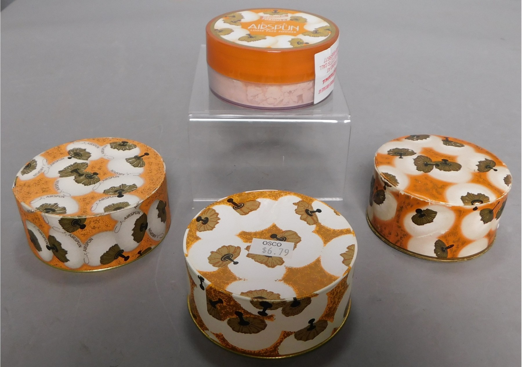 4 packages of Airspun Face Powder. 1 is sealed. 2 have been opened. 1 is empty, but the container is vintage, and pretty.