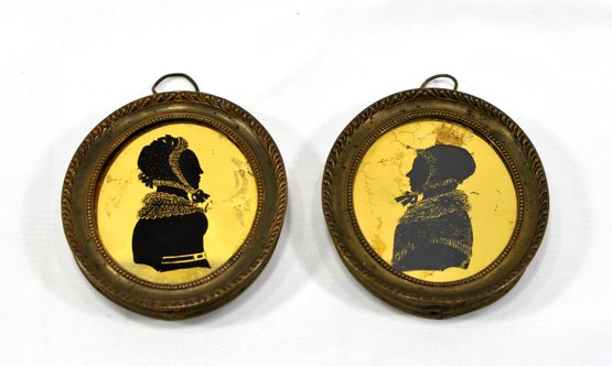 Miniature gold leaf Silhouettes in brass frames.