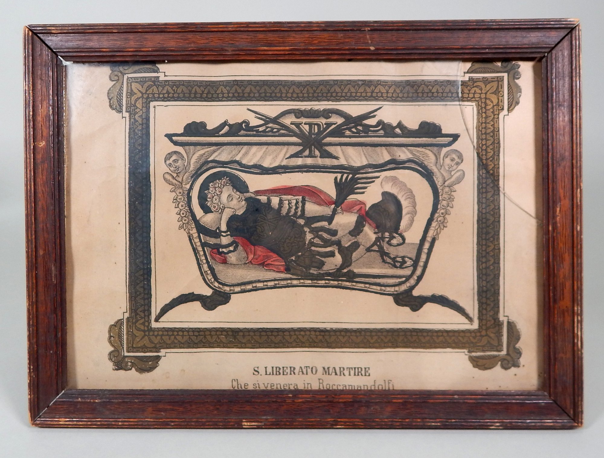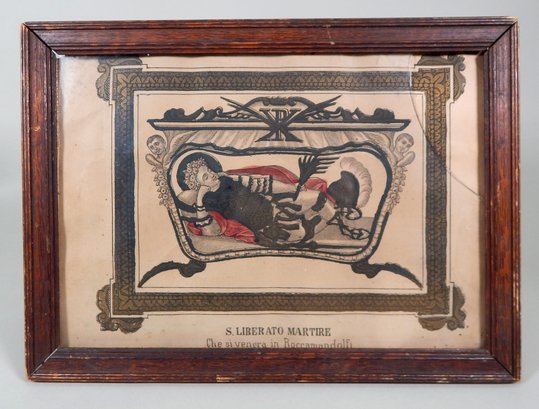 Antique print depicting San Liberato or San Liberale (died 269), who was a Christian martyr from Italy whose annual feast day is the 20 December.