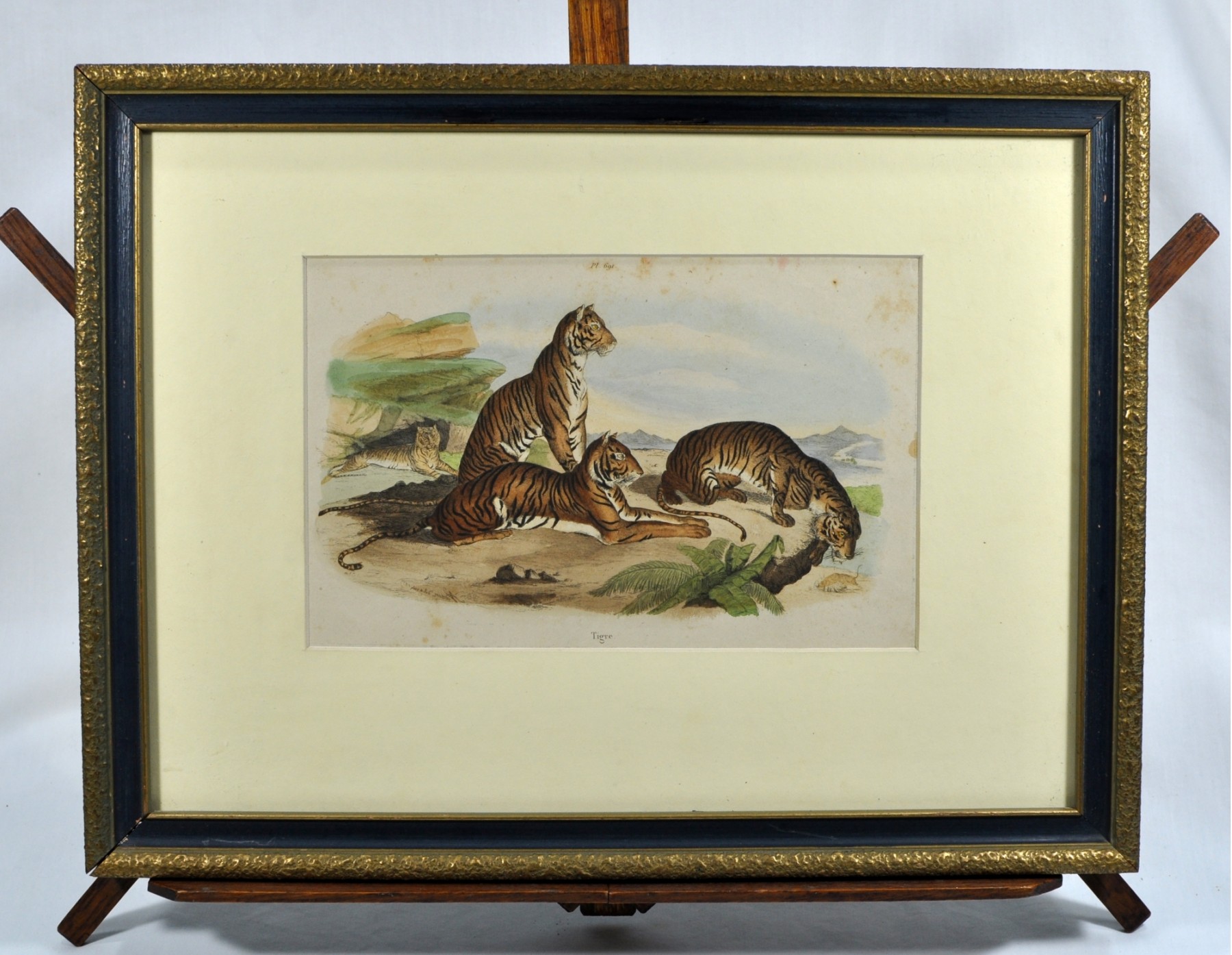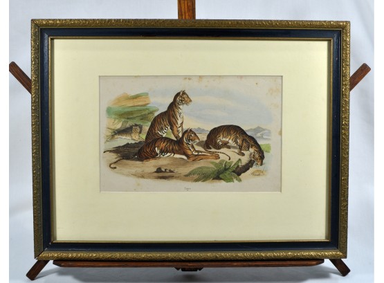 Antique engraving of tigers with original coloring.