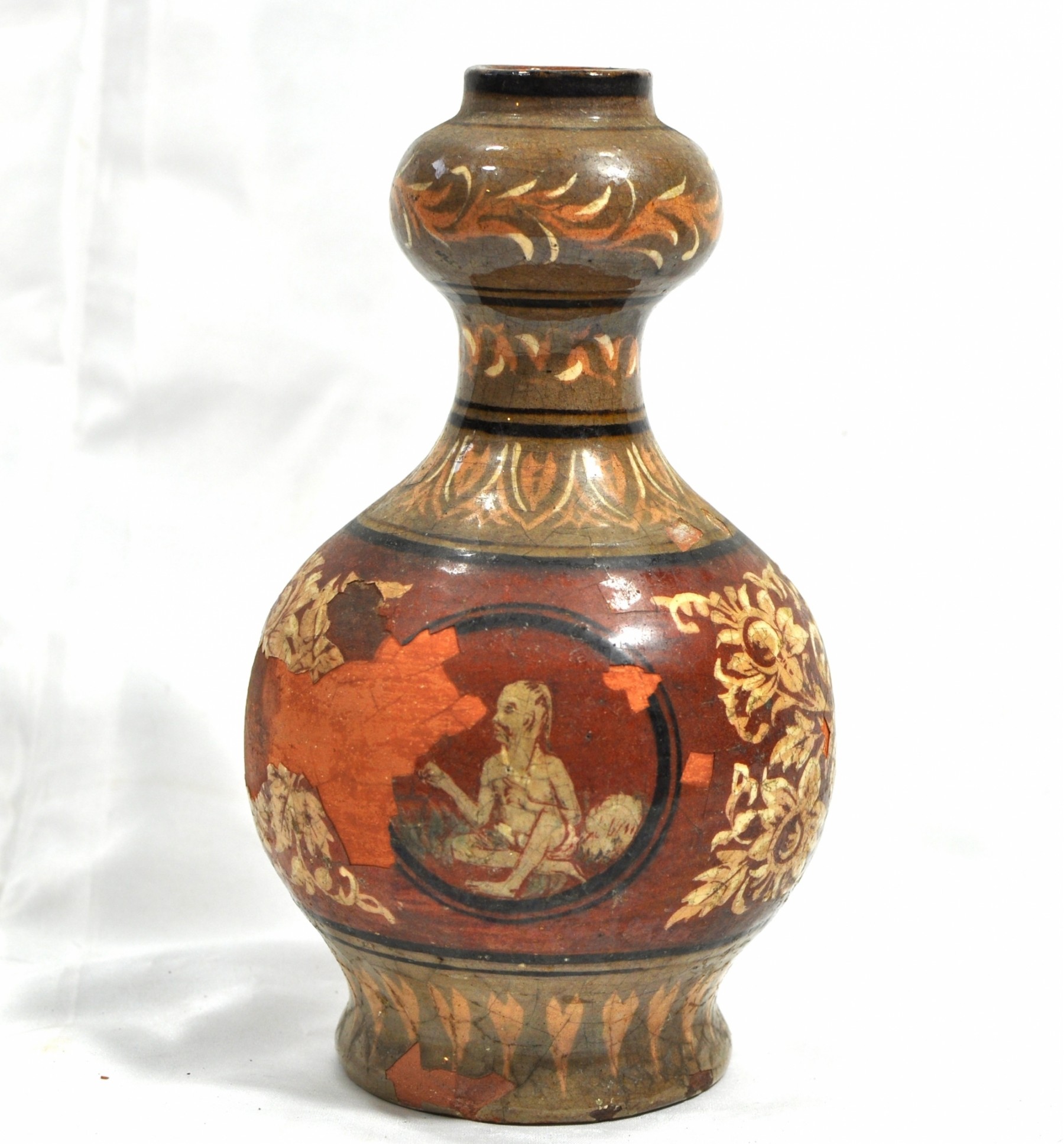 Antique or ancient oriental vase possibly Persian, decorated with floral designs and