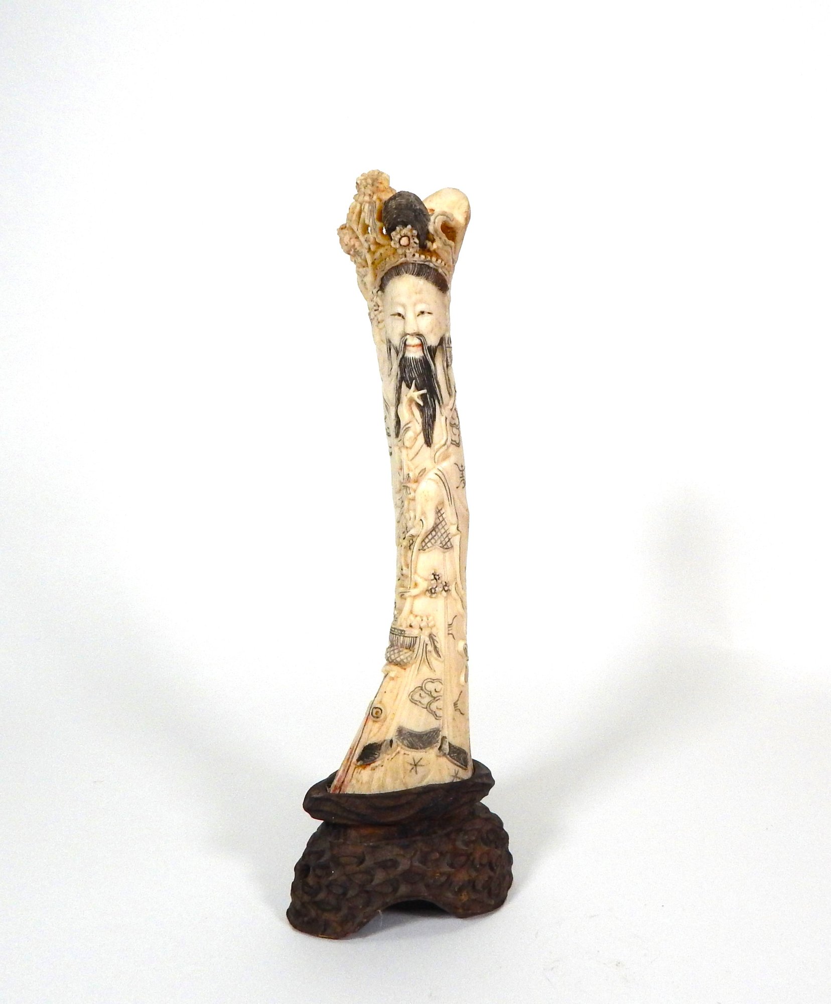 Hand carved and very detailed figure of bearded man on carved wood base.