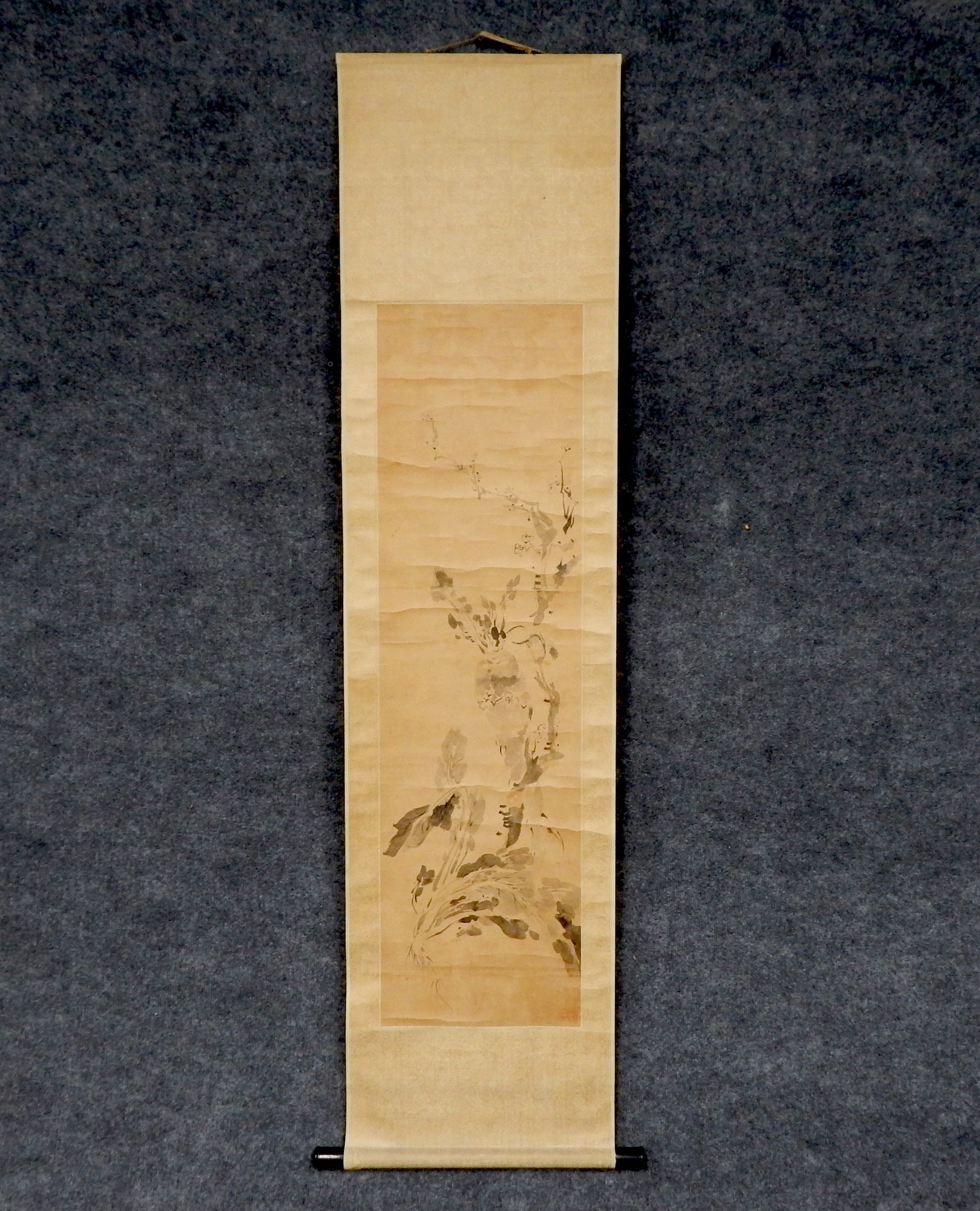 Antique signed scroll painting, measures 68.5" x 17".