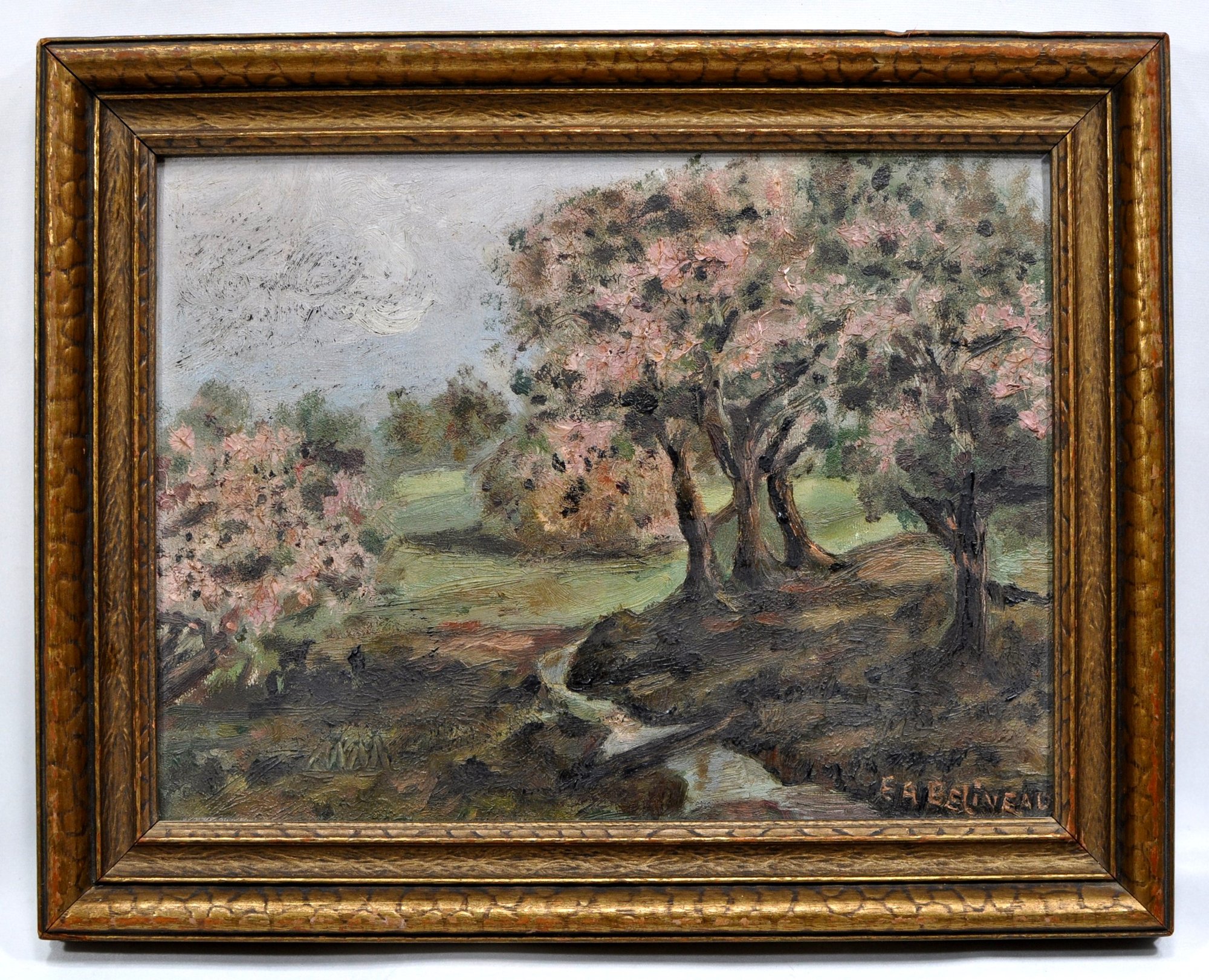 Antique oil painting on board, illegibly signed Beliveau? lower right.