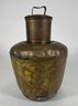 A vintage brass vessel with a lid and handle. It measures approximately 15" x 10" and weighs 81.9 oz.