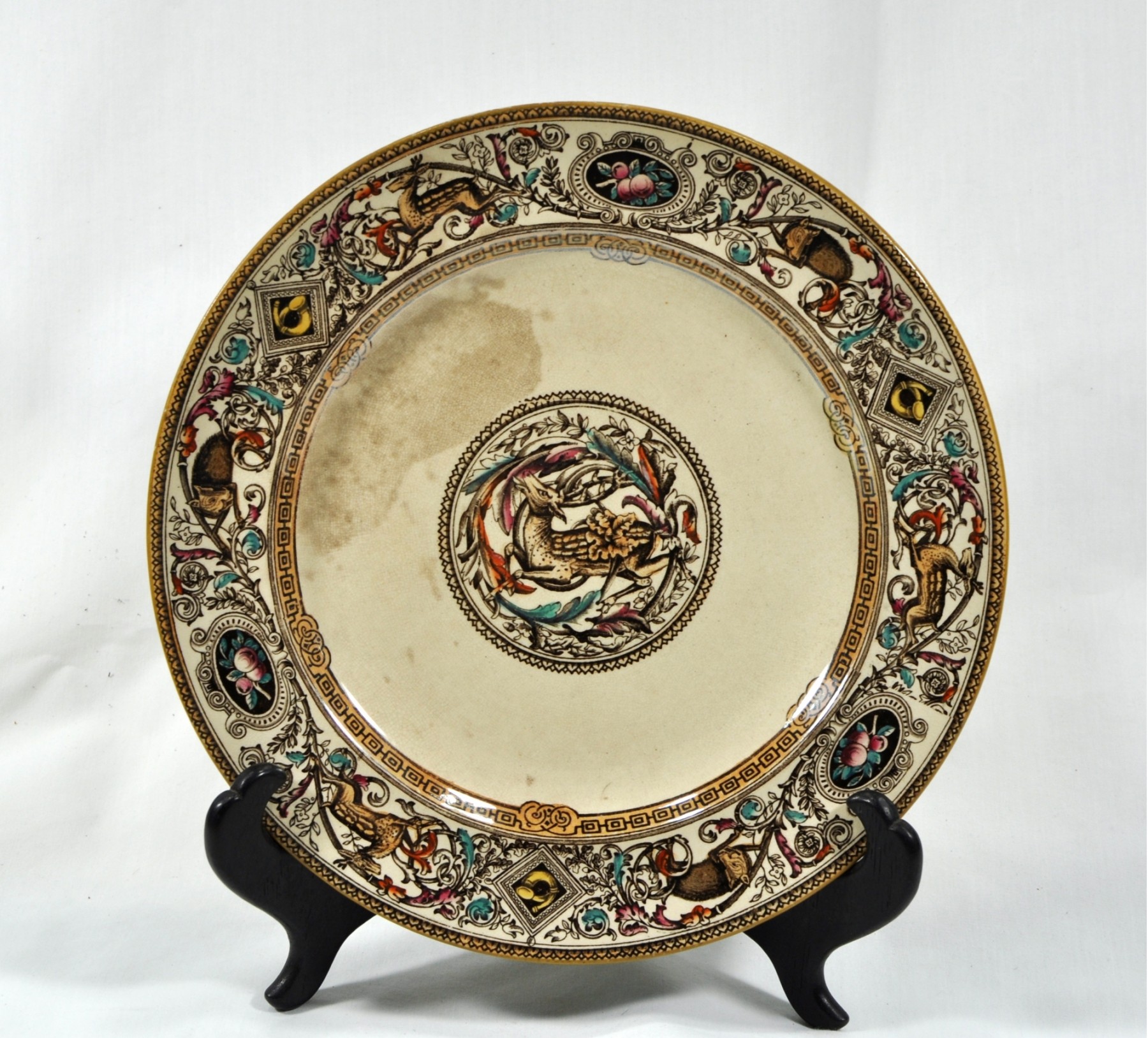 Antique Ironstone Brown Transferware Plate made in the mid 1800s by Hope & Carter, H&C, of Staffordshire England in the company’s “Borgia” pattern.