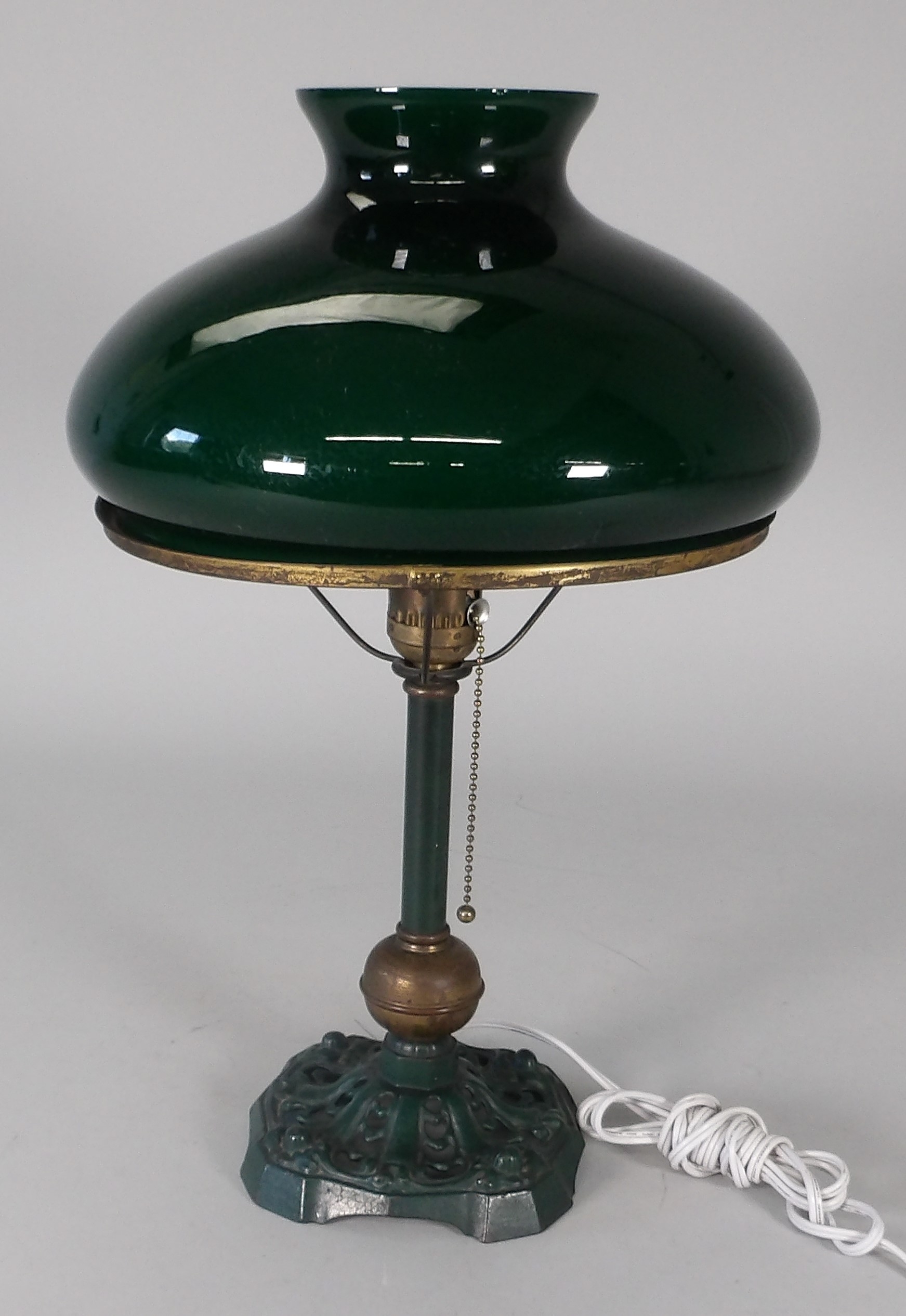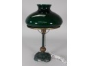 Lamp has a green base and emeralite shade.