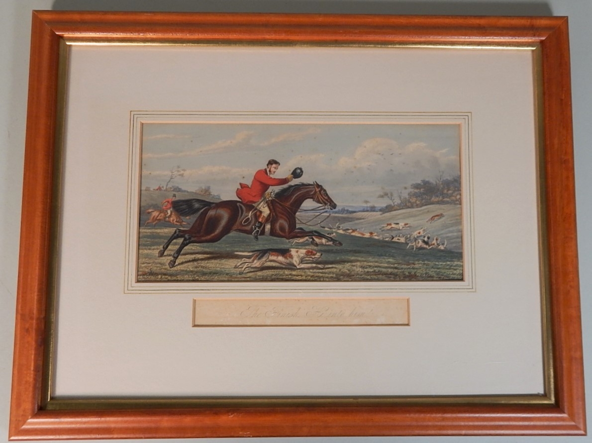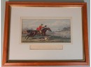 Listed is a hand colored fox hunting print by Sheldon Williams, beautifully framed and French matted. It measures 21.5"w x 15.5"h. On the back is hand written: "Sheldon Williams, London published, March 2nd 1870 by J. McQueen, 37 Great Marlborough St., Regent St. + 22 Rue de Dunkerque, Paris." There is minor foxing to the print, but it is overall in very good antique condition. See photos for details.