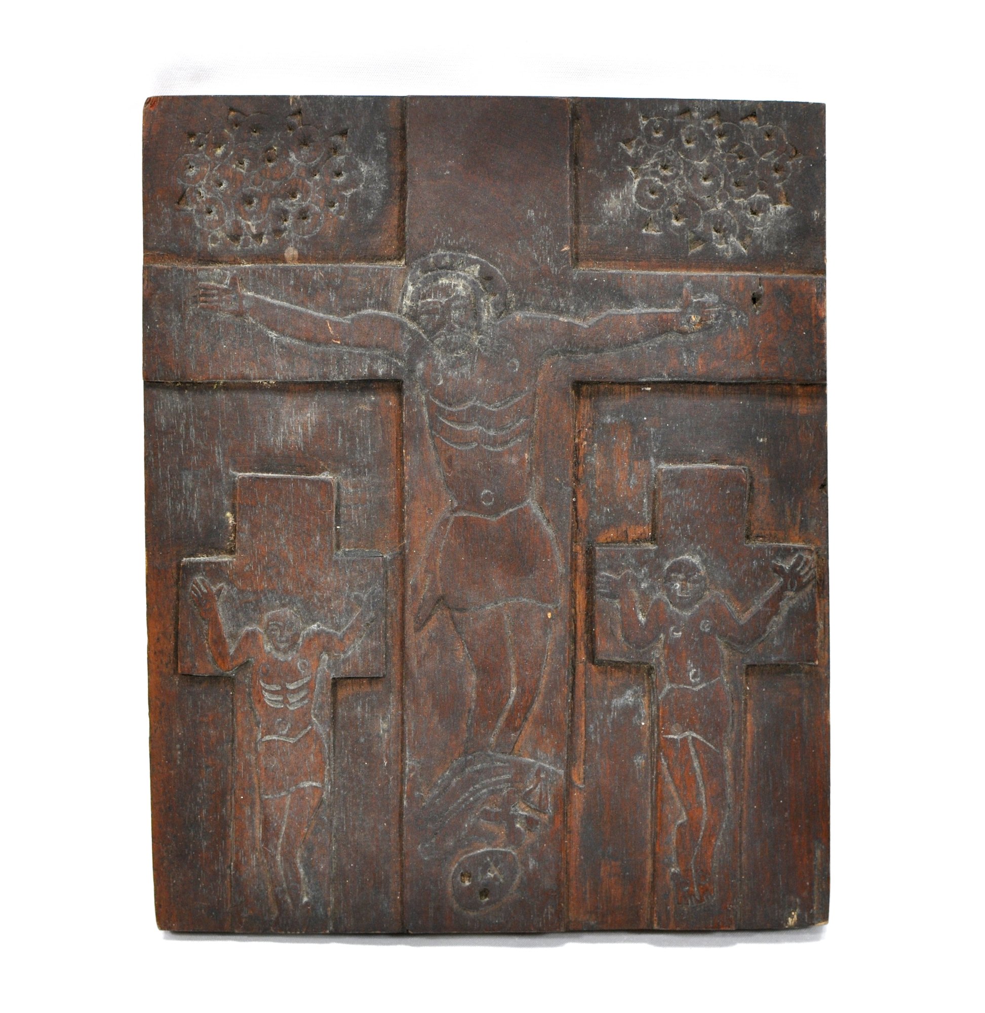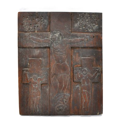 Antique naive style hand carved crucifixion scene.