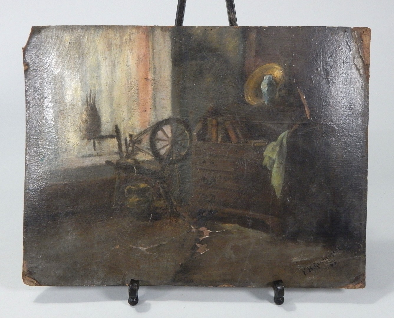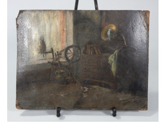 Antique oil on card, illegibly signed and dated lower right.