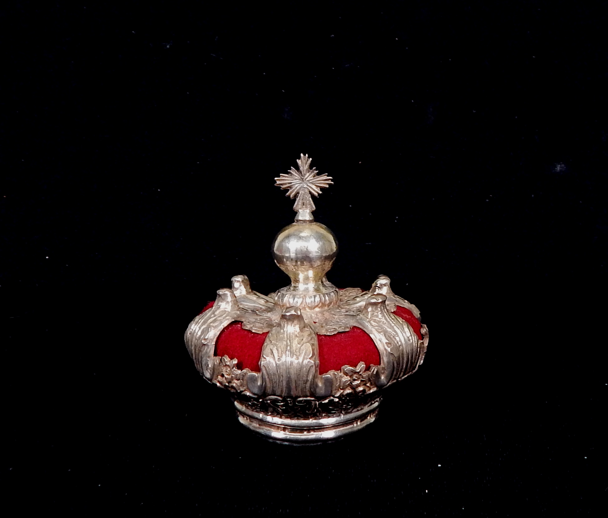 Antique silver Italian religious crown, lion hallmark.