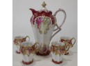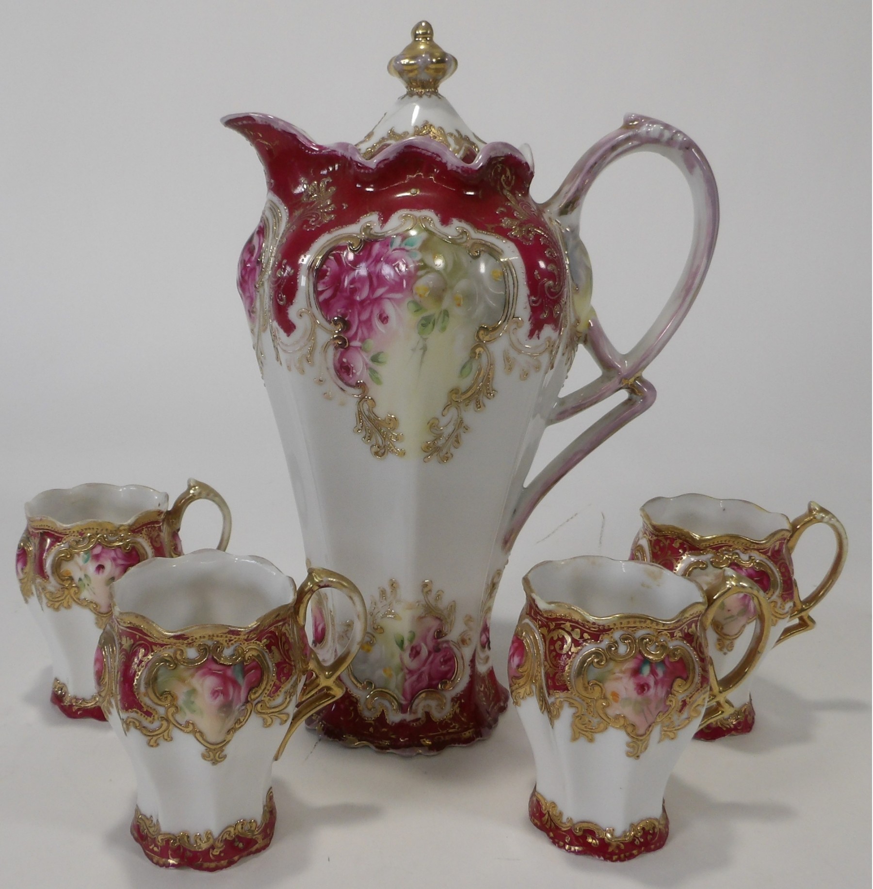 This set dates back to the early 1900's. Pink roses and gold beads.