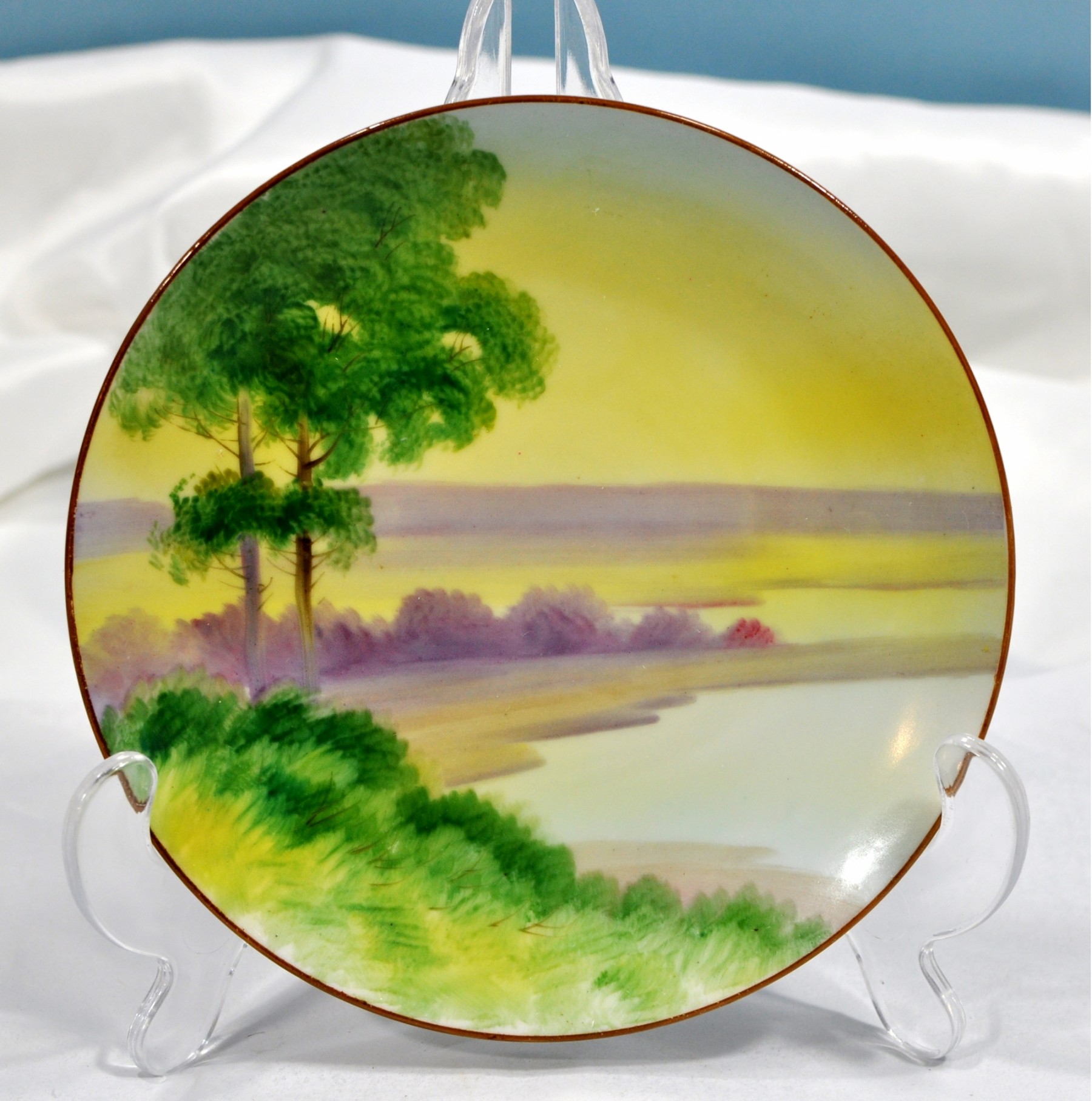 Original Nippon plate with oil painted landscape.