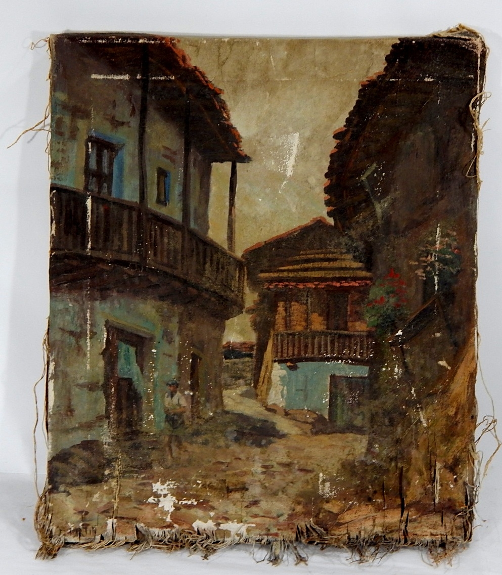 Poor condition oil on canvas for restoration.