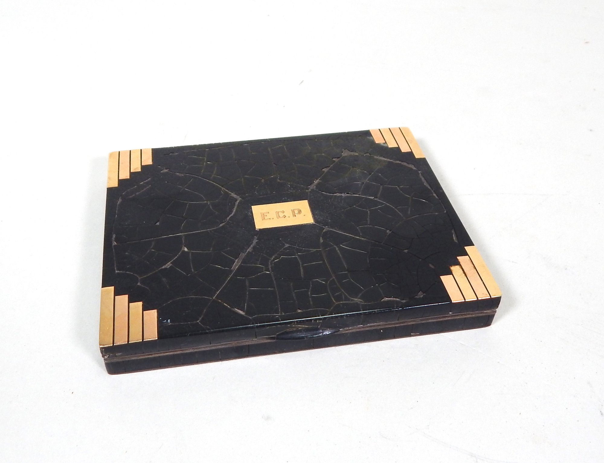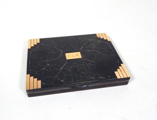 Amazing hallmarked sterling silver box with gold wash inside, cracked lacquer on top and solid 14k gold plaques on top.
