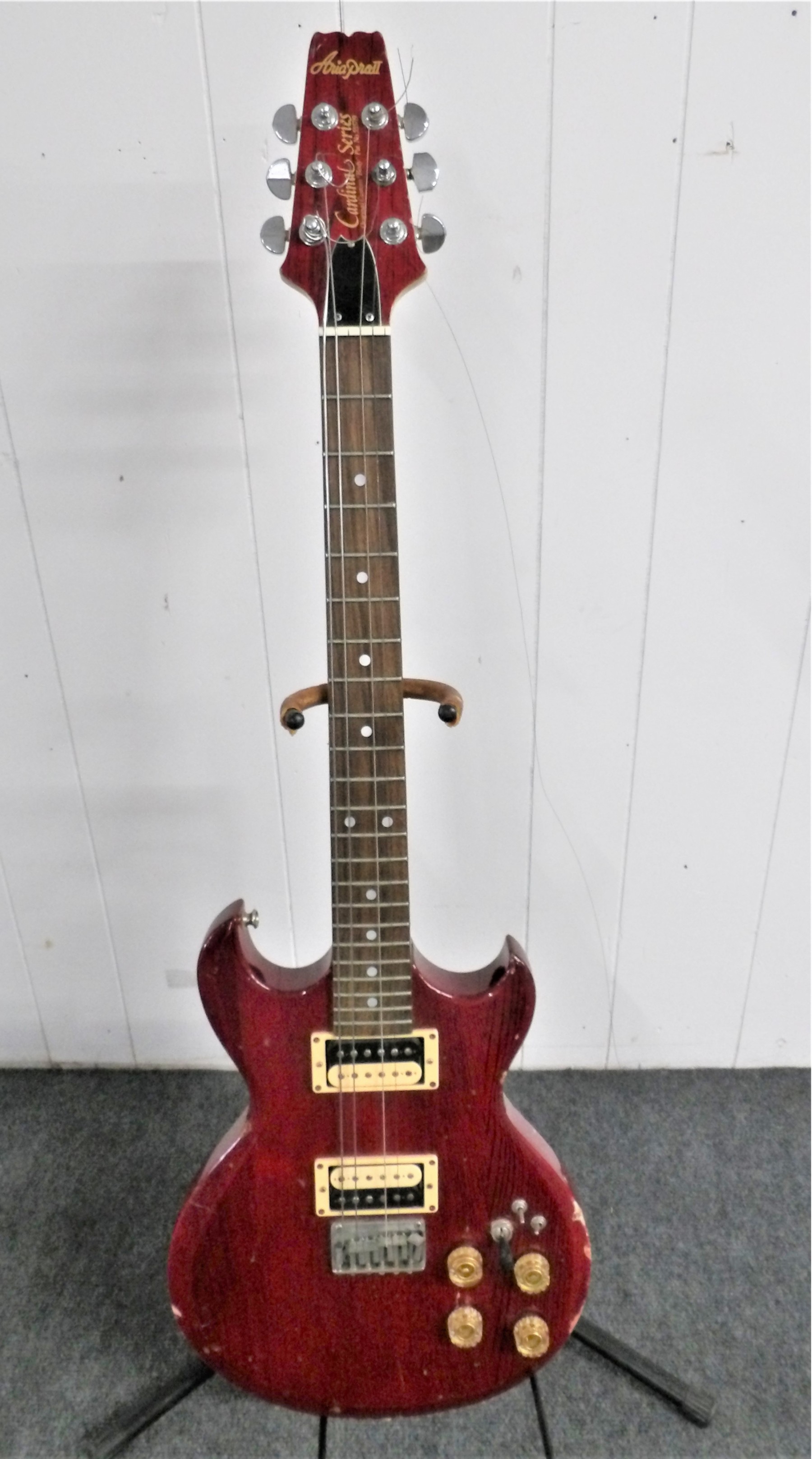 Listed is an electric guitar by AriaPro Cardinal Series Serial #1120719, made in Japan. Length of guitar is 39".
