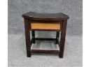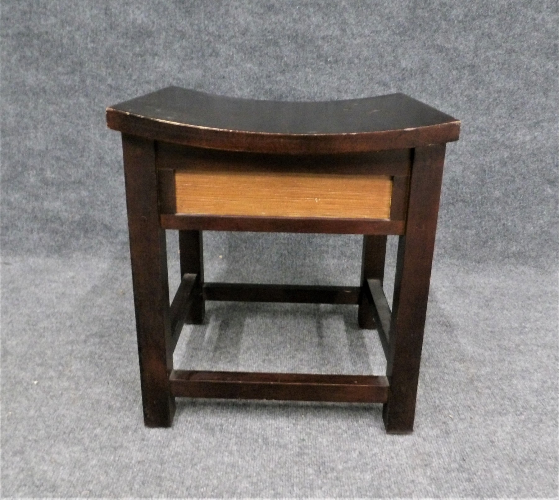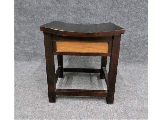 Listed is an Asian style stool - black with light wood inserts on each side. It measures 14.5" x 16.5 the seat x 18.5h. Condition is very good, but could use a good finishing to clean up nicks here and there. See photos for details.