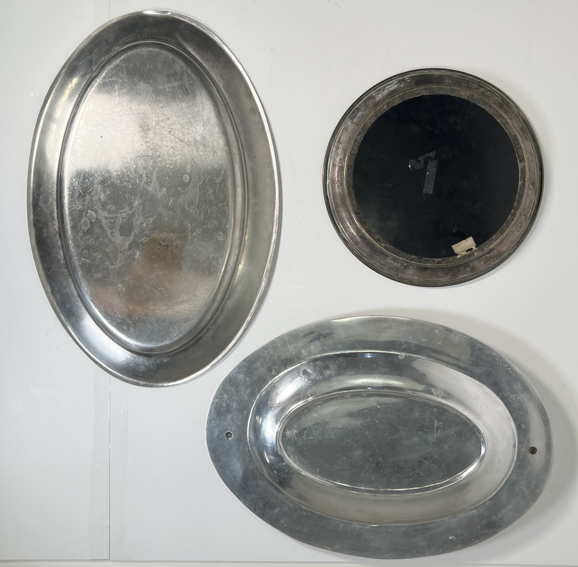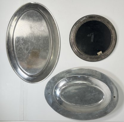 A collection of three oval serving trays of varying sizes. The largest tray measures approximately 21 inches in length.