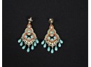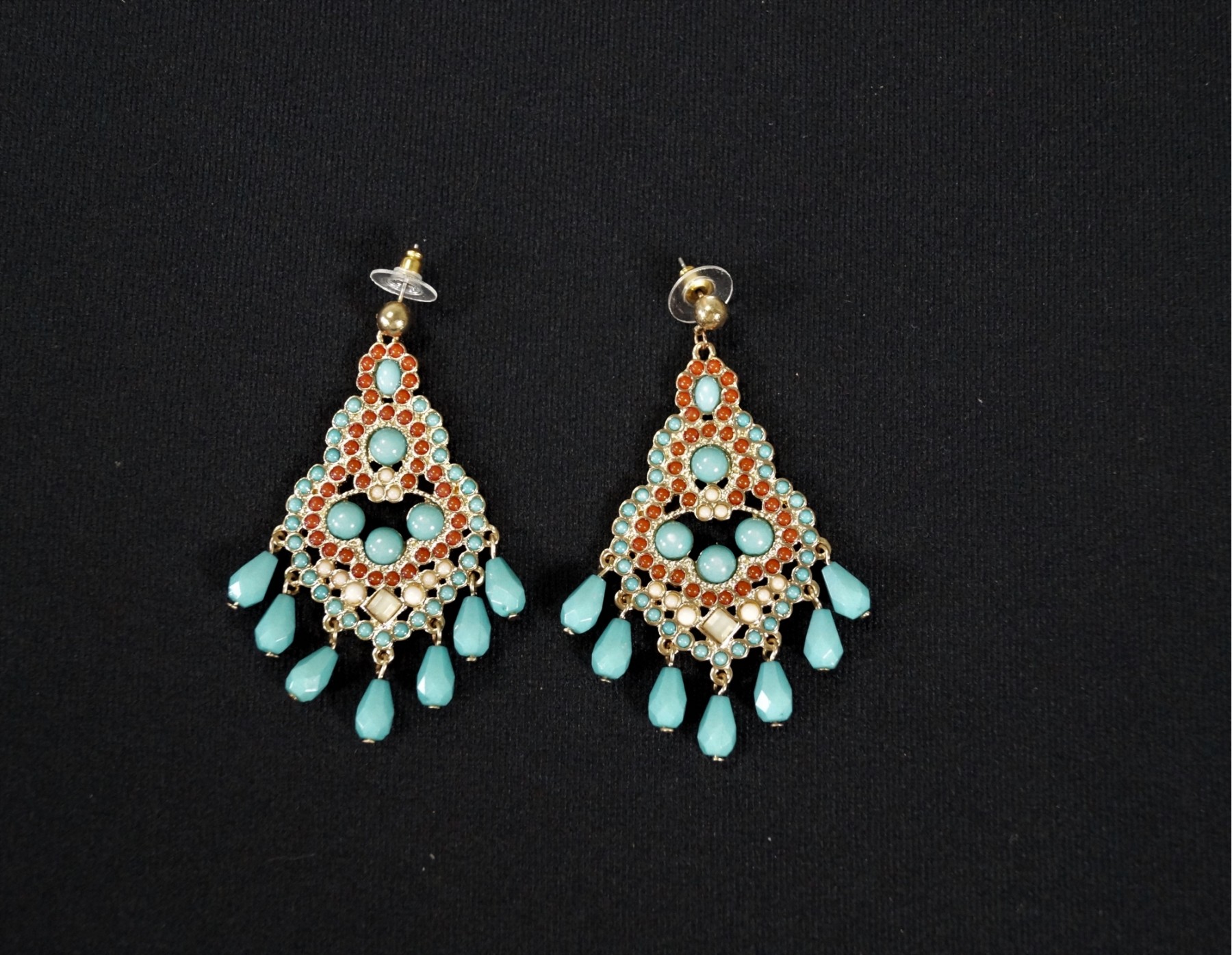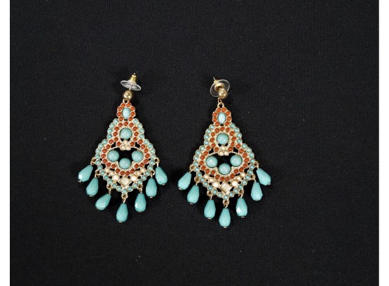 Listed is a pair of gold tone dangle earrings with colorful faux stones. They measure 2.75" long. In very good condition with no signs of wear. Please see photos for details.