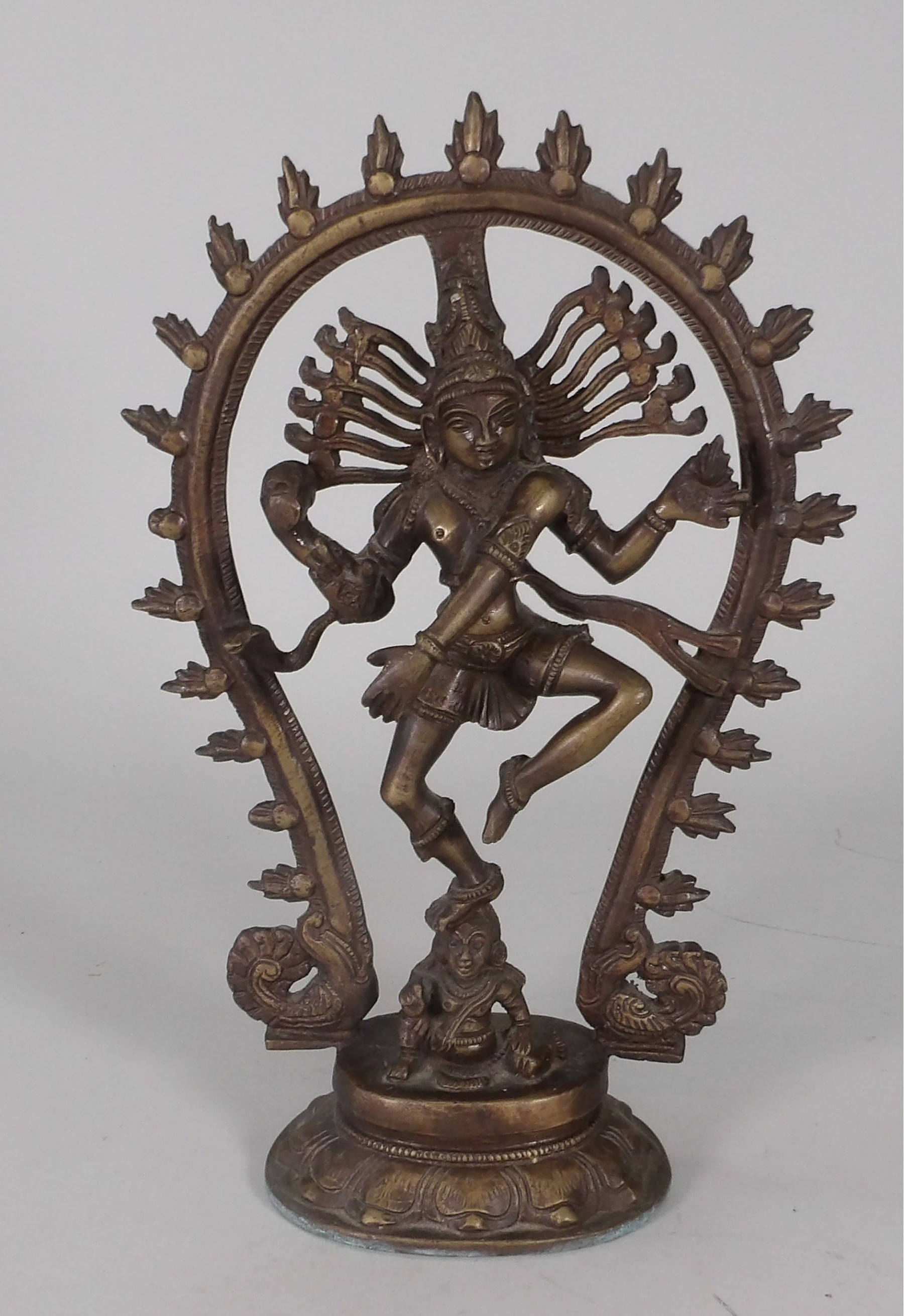 Nataraja means "king of dance". It is the name given to the Hindu god Shiva. There is so much symbolism in this statue. It weighs 4 lb. 9 oz.