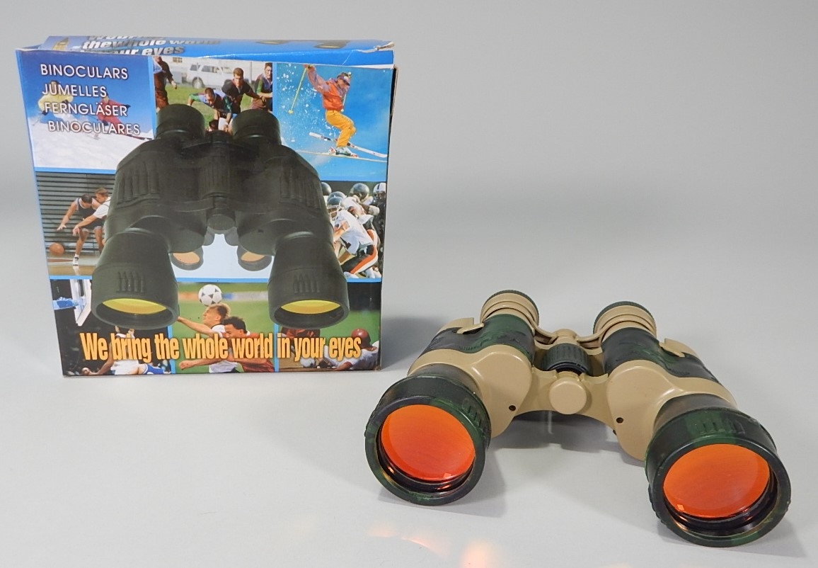 Camouflage military style binoculars. 20 x 50. Comes in the box.