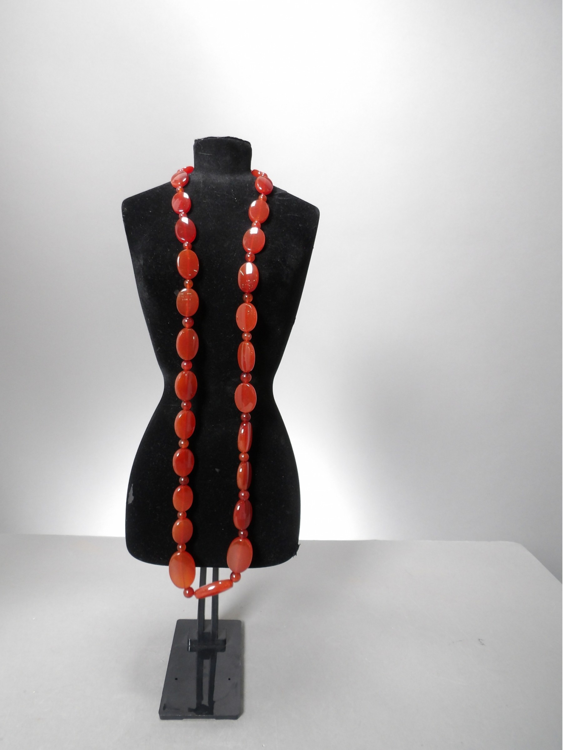 Lovely carnelian necklace measuring 29" long. Condition is new. See photos for details.