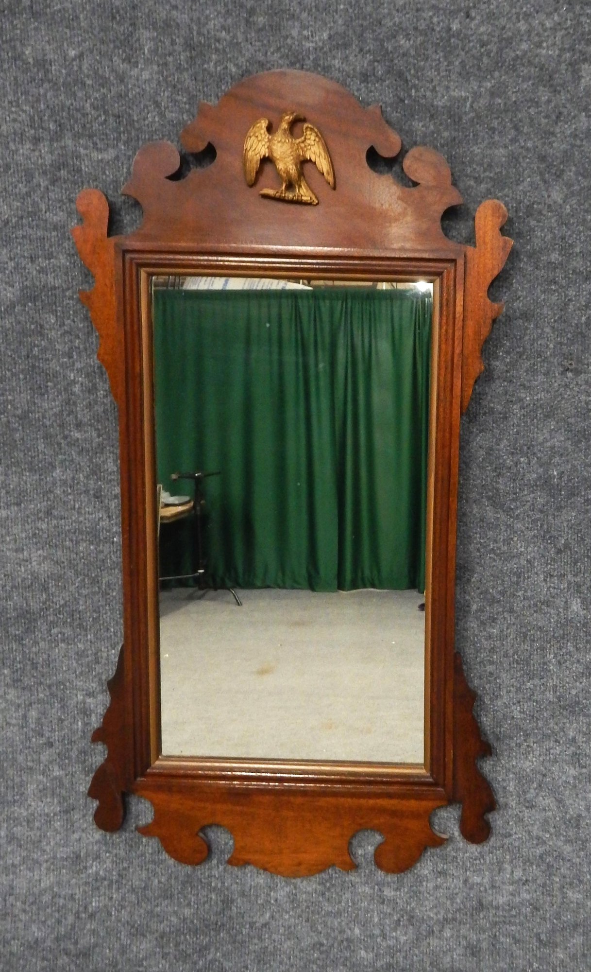 Repro of an original Chippendale mirror by Lomis Brothers Woodcrafters, Attleboro, MA.