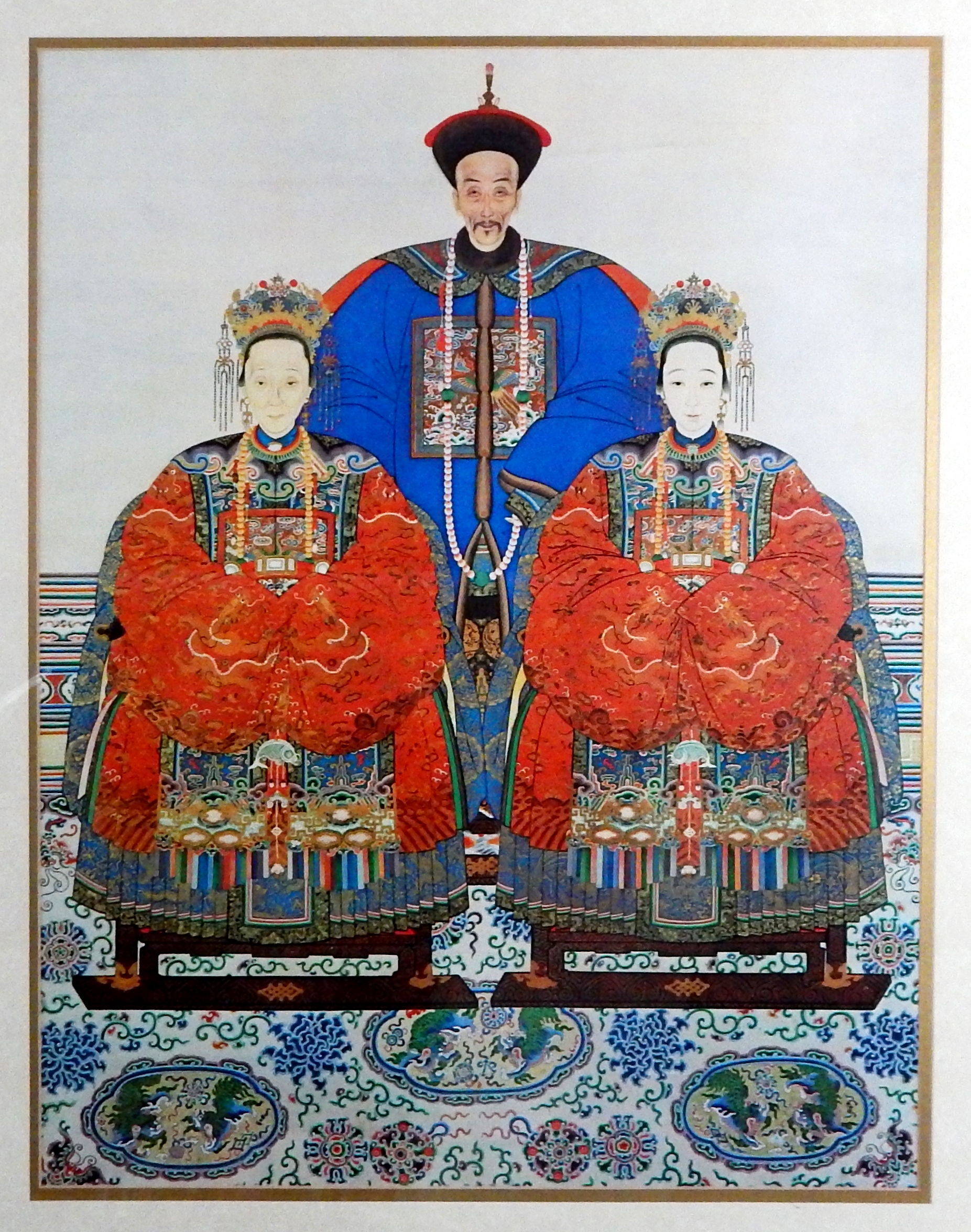 Large Chinese Ancestral framed print in good condition.