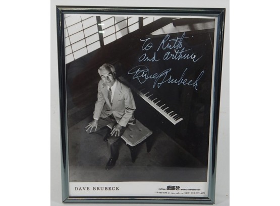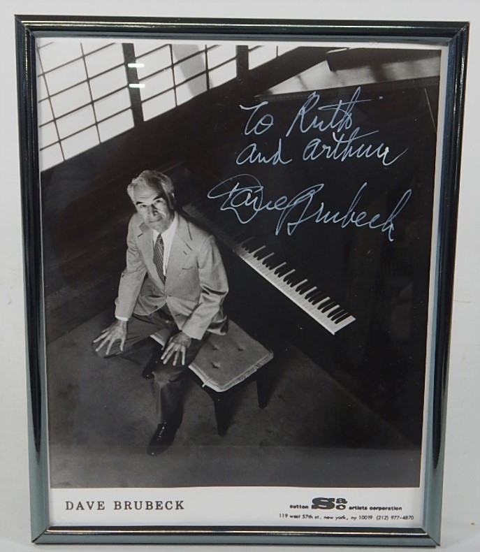 Listed is a black and white photograph of Dave Brubeck, autographed. It measures 8" x 10". In very good condition.