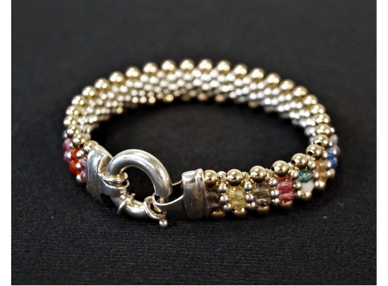 Listed is a lovely Dovera sterling silver bracelet in original box and with original information about the piece. It measures 7.25" long overall x .5" wide. It features Swarovski crystals and pearls, gemstones, sterling silver and 14K gold filled beads. It has a spring circle clasp. It is in new, unused condition. Please see photos for details.