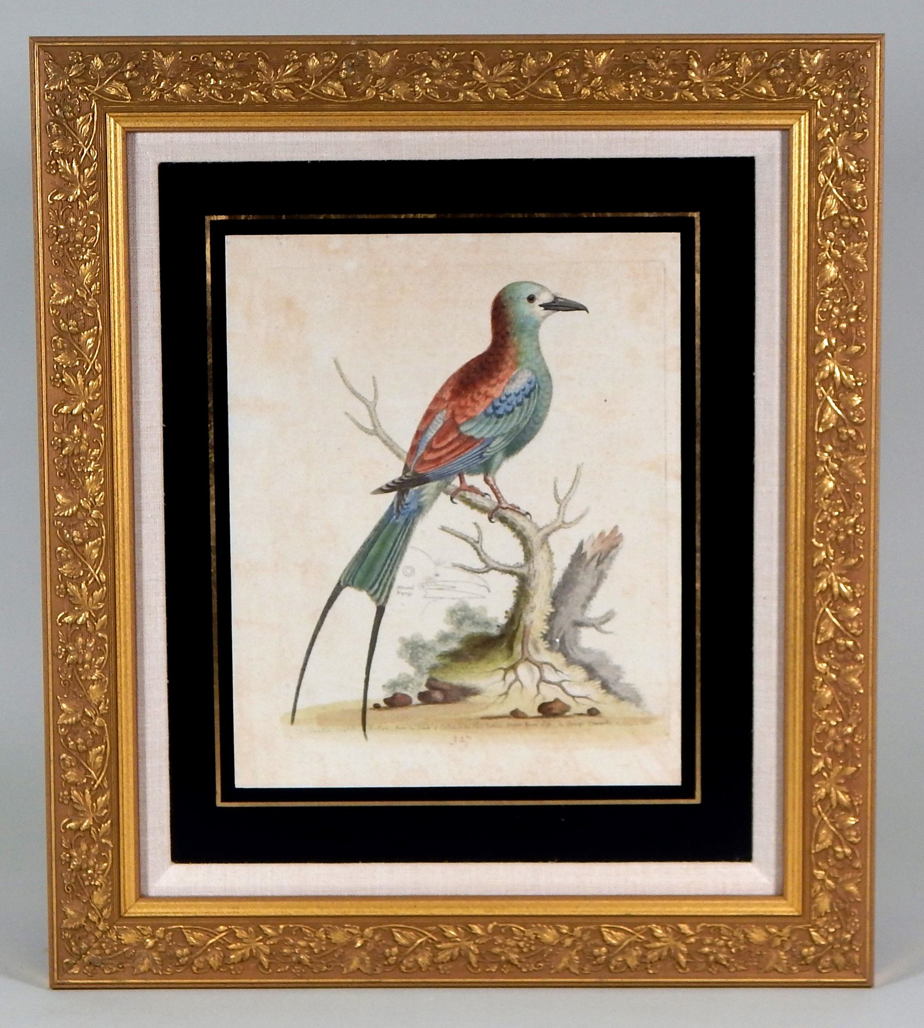 Original colored engraving "The Swallow-Tailed Indian Roller" 1761 by George Edwards.