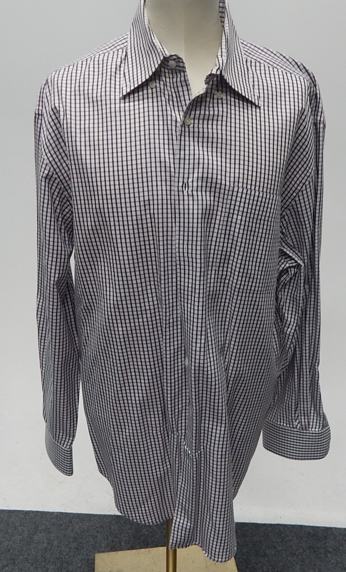 100% cotton. Black and purple stripes. Button down collar. Like new. Size L.