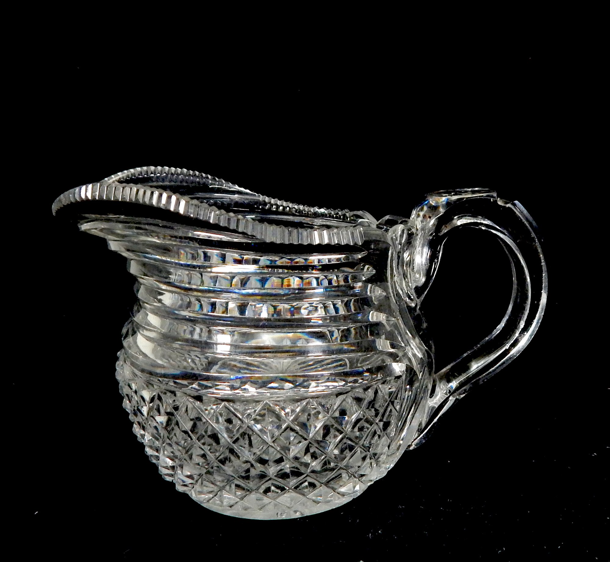 Vintage regency diamond & step cut glass cream jug small pitcher.